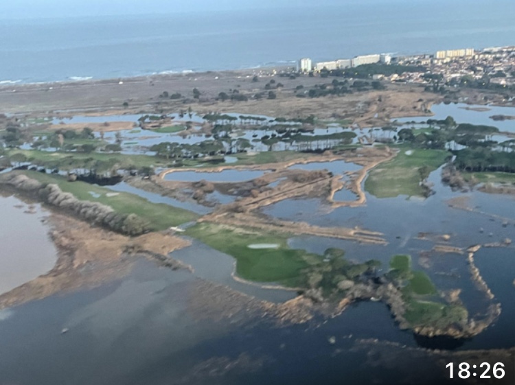 Si 2025 a été compliquée pour notre parcours en terme de sécheresse, il en va tout autrement pour cette fin d'année comme l'attestent les photos aériennes prises le 29/12/2025, à retrouver dans la photothèque.